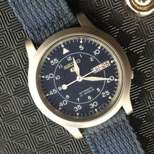Seiko 5 Military Style Automatic Field Watch With Blue Canvas Strap Snk807k2 99 00 Picclick