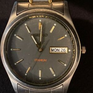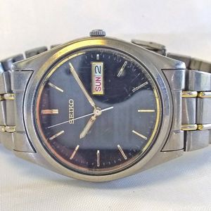 Seiko Titanium Day Date 7n43 5 Bar Mens Watch Gwo 2tone 168804531