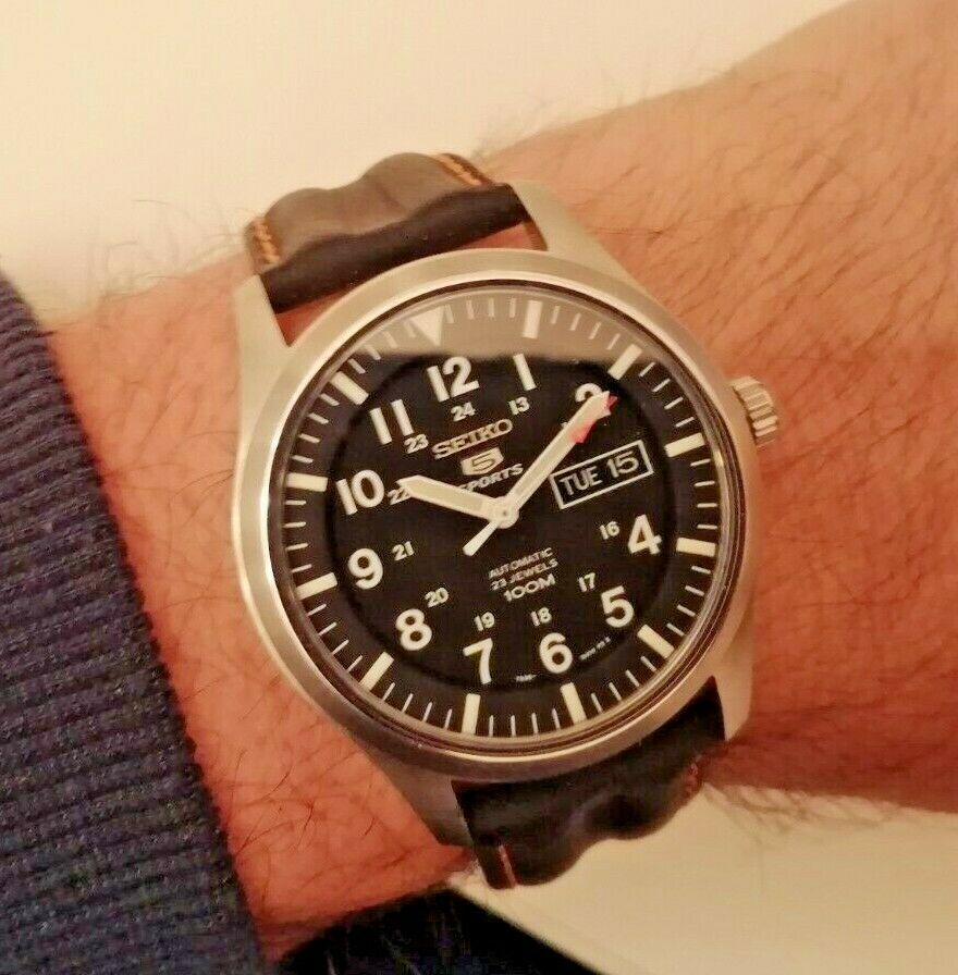 Nos Seiko 5 Sports Srp721k1 Automatic Black Leather Strap Limited100m Watch Ebay
