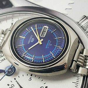 Seiko 5 Automatic Watch Men S Vintage Day Date 17 Jewels Blue Good Condition Dial Watch Cal 7009 Haute Juice