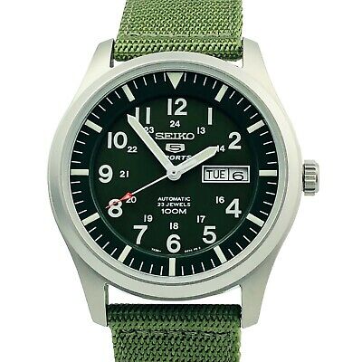 Seiko 5 Military Khaki Automatic 100m Mens Nylon Watch Snzg07k1 Snzg07 Reddeerwatches Com