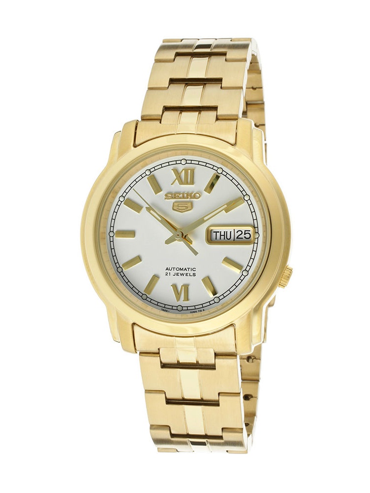 Seiko Men S Seiko 5 Automatic Gold Dial Gold Tone Stainless Steel Watch Best Cloutwatches Com