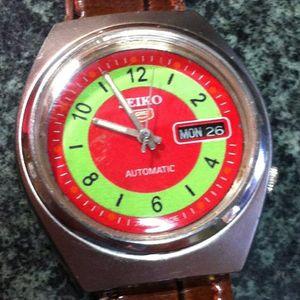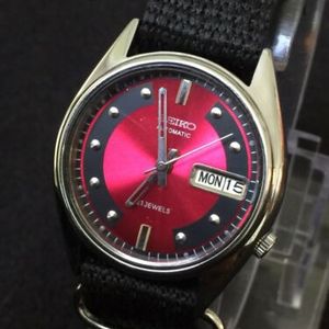 Vintage Seiko 5 Red Face Automatic Men Watch Rare Nr Thai Numeric Number 1789935061