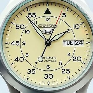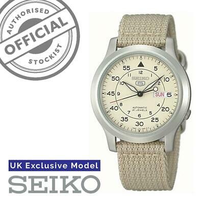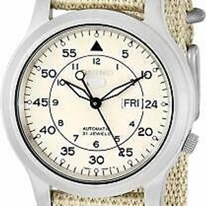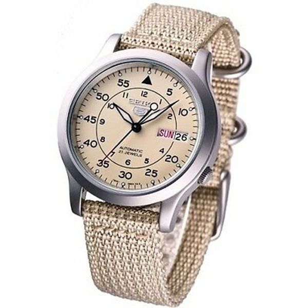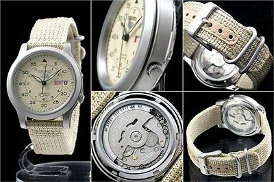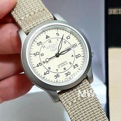 Seiko 5 Snk803k2 Box Automatic Military Watch Cal 7s26c Beige Face Nylon Strap Ebay