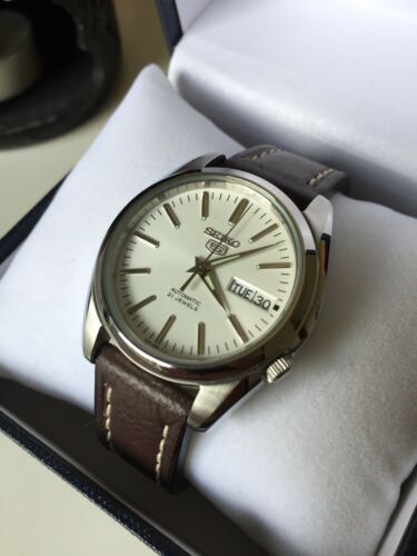 Seiko 5 Snkl41 Mens Automatic White Watch New Leather Strap 115 00 Picclick
