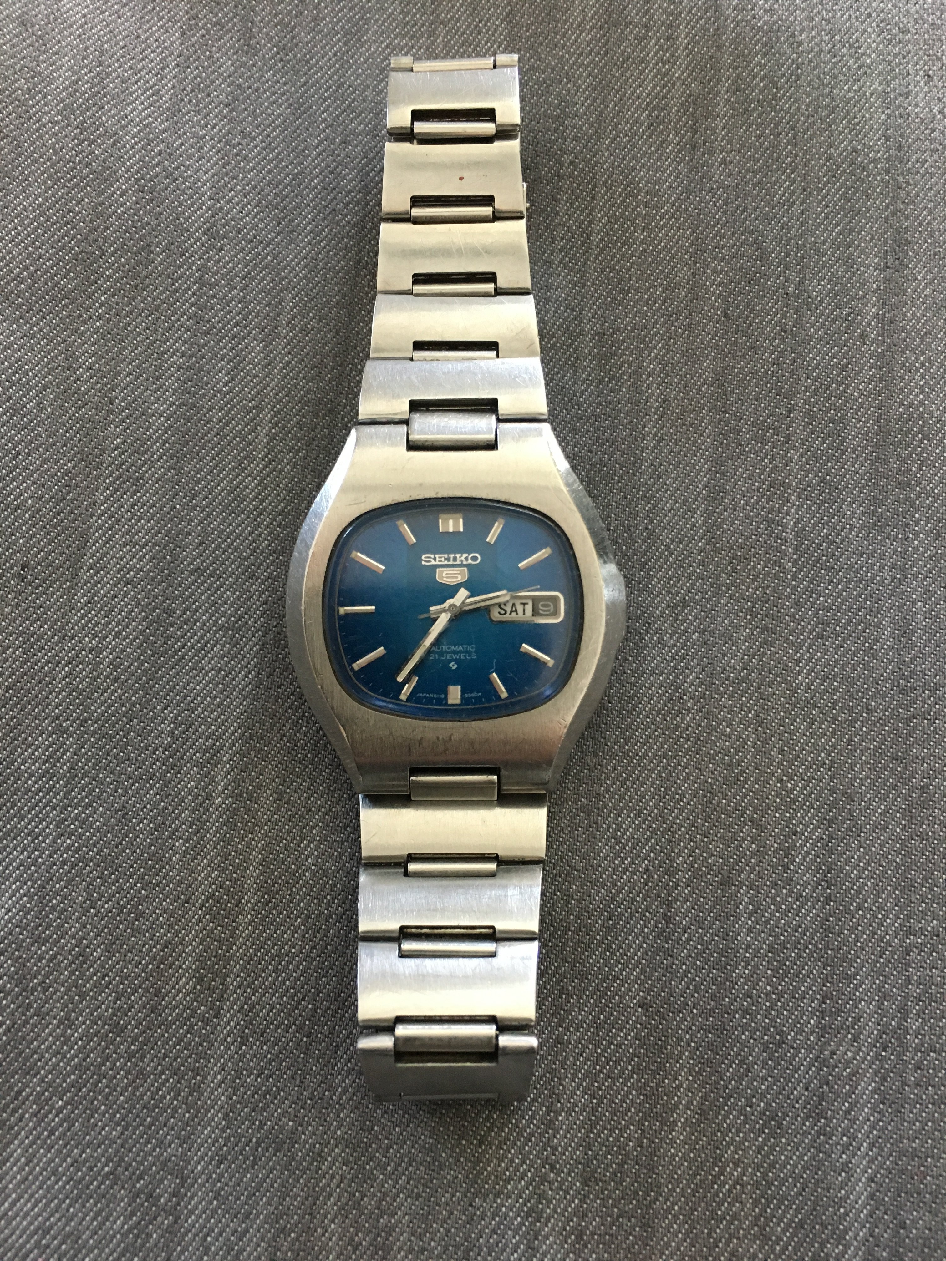 Fs Seiko 5 Tv 6119 5400 W Blue Dial Original Bracelet 175 Watchpatrol