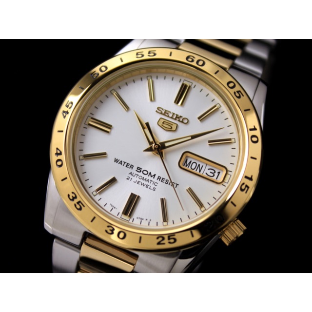 Qoo10 New Seiko 5 Snke04k1 Two Tone White Face Classic Day Date Automatic Me Watches