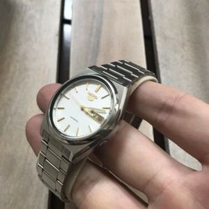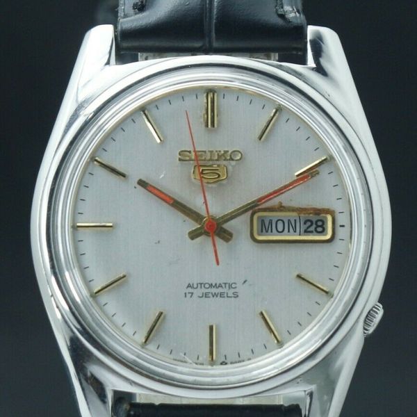 Genuine Vintage Seiko 5 Automatic White Dial 17j Day Date Mens Gents Wrist Watch 271758398