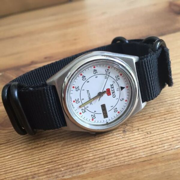 Used Vintage Ss Railway Timing White Dial Seiko 5 Gents Automatic Wristwatch 2 Ebay